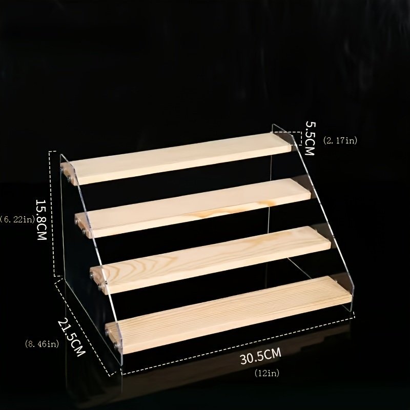 1pc Acrylic Multi Layer Display Riser Stand With Wood Panel For Display, Clear Acrylic Display Risers, Acrylic Jewelry Display Stand Shelf