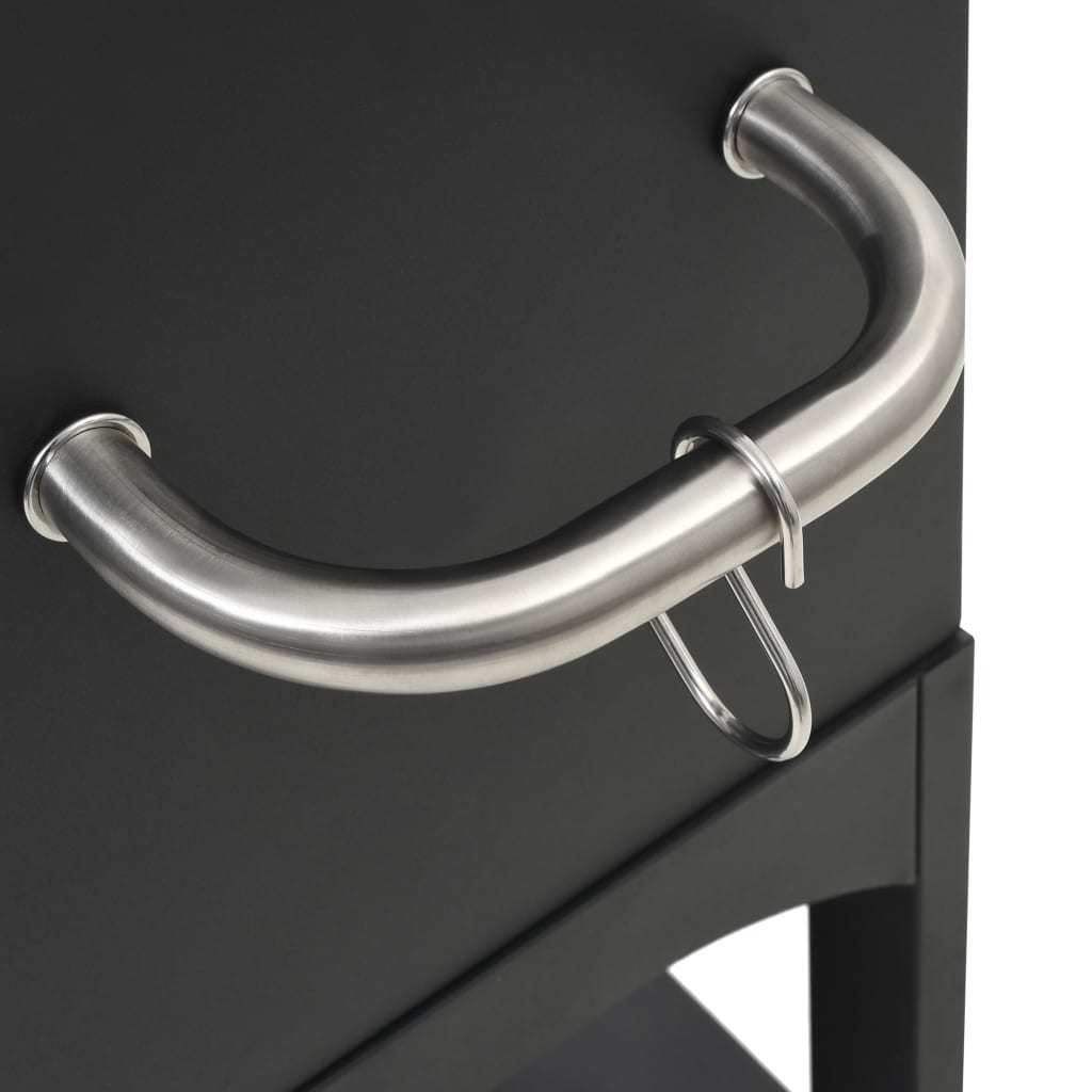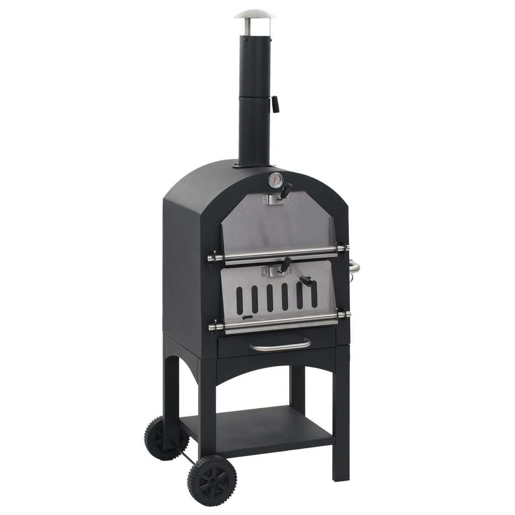 Made of high-quality powder-coated steel, this oven is highly robust and durable. The fire tray is removable, allowing for quick and easy cleaning. The practical shelf underneath provides space for storing oven gloves or other supplies. This oven also comes with a built-in thermometer which displays the cooking temperature inside. Thanks to the two wheels, the smoker is easy to move around. A pizza stone is also included in delivery.Color: BlackMaterial: Powder-coated steelOverall dimensions: 25.6" x 23.6" x 61.8" (W x D x H)Cooking area size: 19.7" x 14.4" (L x W)With built-in thermometerWith 2 wheels for mobilityRemovable fire/ash trayPizza stone includedWARNING There may be local legal requirement about using this product. Please follow the legal requirement.