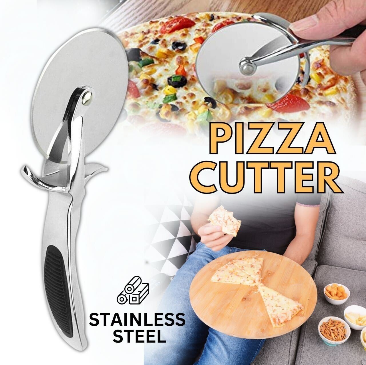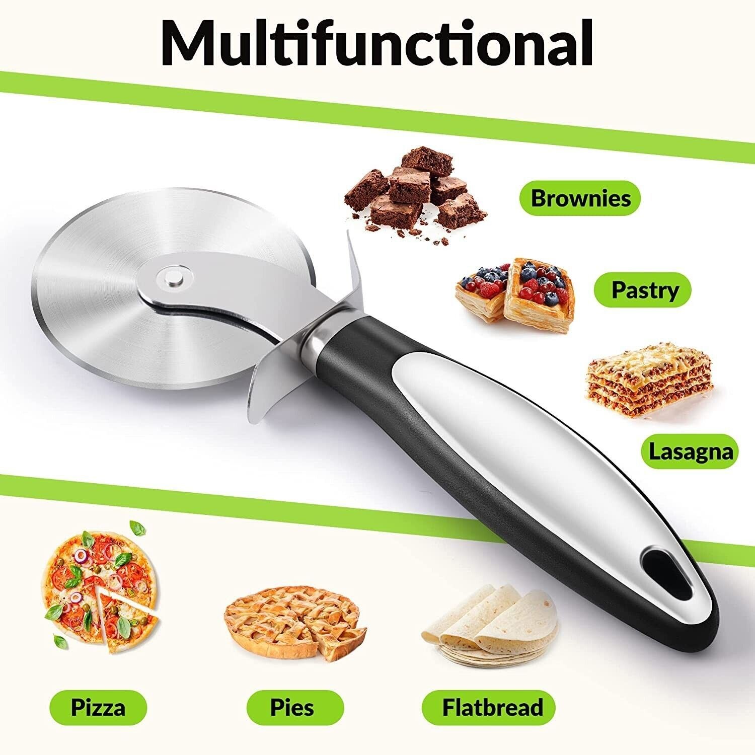 Classic Pizza Cutter Wheel, Stainless Steel Pizza Slicer with Non-Slip Handle Sharp Pizza Wheel Ideal For Pizza, Cake, Pies and Dough Cookies