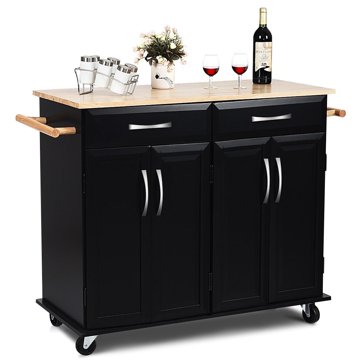 Black Kitchen Island Storage Cabinet Cart with Wood Top and Wheels Black Kitchen Island Storage Cabinet Cart with Wood Top and Wheels Black Kitchen Island Storage Cabinet Cart with Wood Top and Wheels Black Kitchen Island Storage Cabinet Cart with Wood Top and Wheels