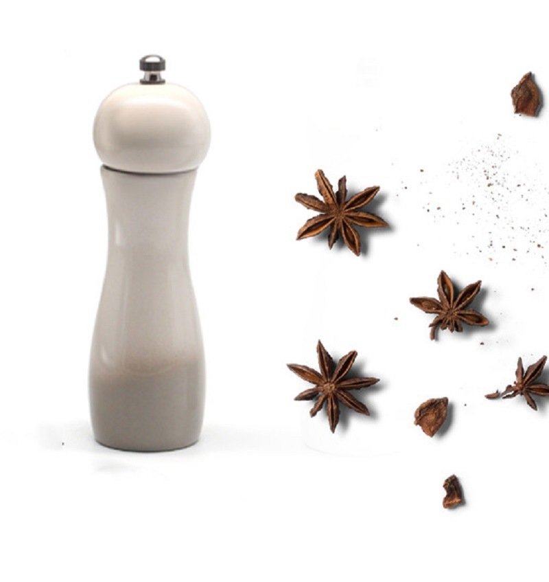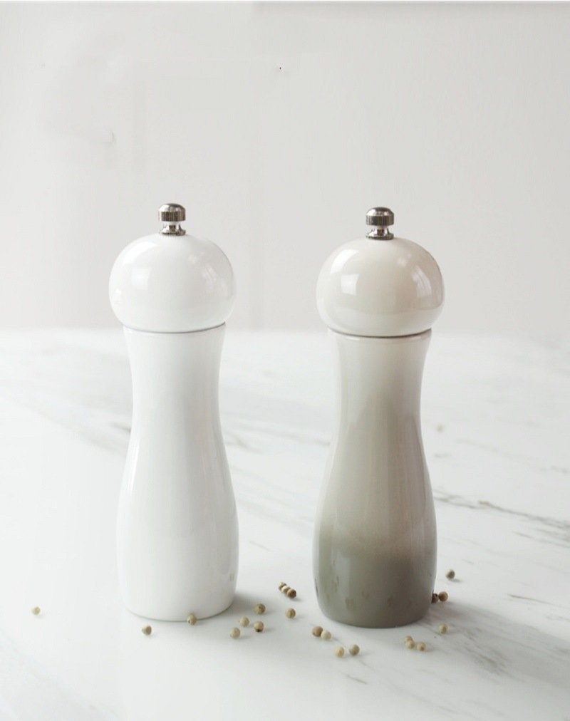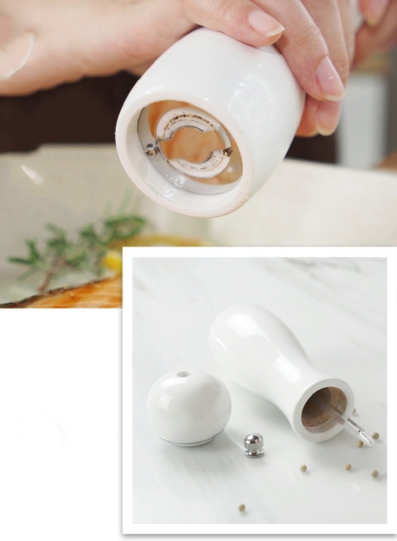 3.The two different colors of White and Light Grey grinders can be easily identified as the sea salt grinder and pepper mill. They are perfect decorations for kitchen or any other places for their beautiful and elegant design.